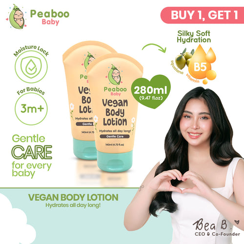 Peaboo Baby Vegan Body Lotion All-Day Hydration Fast Absorbing & Gentle Scent with Squalane (140ml)